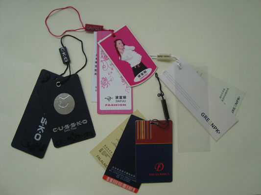 कस्टम मुद्रित लक्ज़री वस्त्र पेपर हैंग टैग उभरा हुआ सिल्वर फ़ॉइल मुद्रांकन लोगो