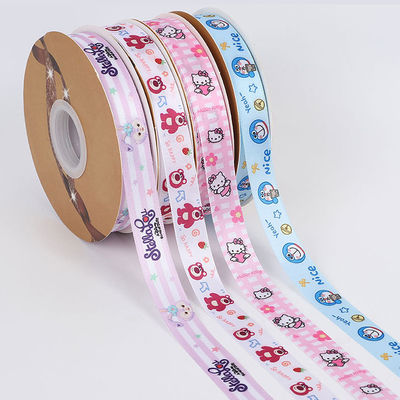 कस्टम लोगो मुद्रित पॉलिएस्टर साटन रिबन उपहार लपेटने, ब्रांडिंग,