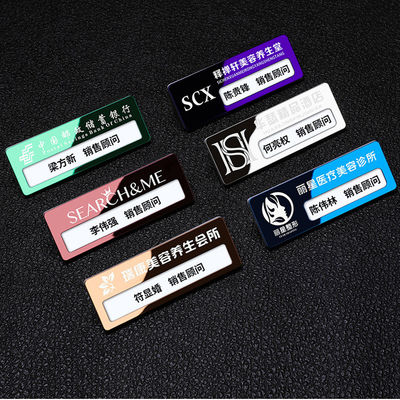हमारी कंपनी लोगो के साथ कस्टम स्टेनलेस स्टील नाम बैज विनिर्माण Replaceable सम्मिलित प्रीमियम